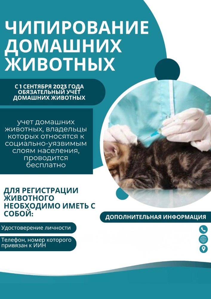 Уважаемые жители Кызылжарского района, напоминаем, что в настоящее время специалистами ветеринарной станции продолжается работа по чипированию домашних собак и кошек для представителей социально уязвимых слоёв населения на бесплатной основе. Владельцы собак и кошек могут обратиться к ветеринарным специалистам сельских округов для предварительного учета имеющихся собак и кошек, а также для проведения вакцинации животных против бешенства и дегельминтизации. Согласно статьи 11 Закона Республики Казахстан «Об ответственном обращении с животными» домашние животные, включенные в перечень домашних животных, подлежащих учету, принадлежащие физическим и юридическим лицам на праве собственности и иных вещных правах, в том числе находящиеся в приютах для животных, пунктах временного содержания животных, реабилитационных центрах для животных, зоологических питомниках, подлежат обязательному учету, в случае смены владельца животного обязательному переучету в базе данных, предусмотренной правилами учета домашних животных. При этом собаки и кошки подлежат обязательному учету, остальные – добровольному.