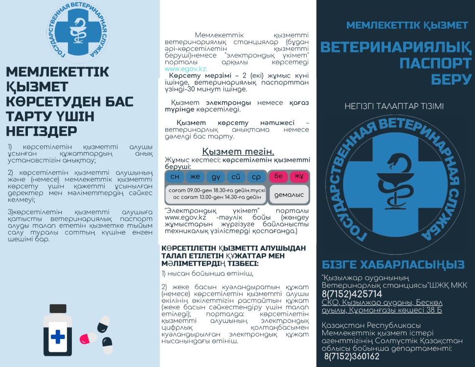 «Ветеринариялық паспорт беру» мемлекеттік қызмет көрсетуге қойылатын негізгі талаптардың тізбесі